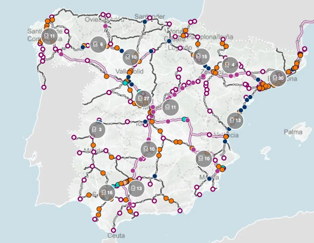 Железнодорожная компания Renfe запустила веб-сервис, позволяющий пассажирам в режиме реального времени отслеживать маршруты поездов AVE (высокоскоростные), а также составов дальнего и среднего следования.